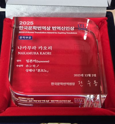 4年前に韓国の「通訳翻訳大学院」に進学され、現在は無事に卒業された韓国で就職されながら、本スクールも受講いただいていた中村かおりさんが、この度めでたく韓国文学翻訳院が主催する「2025韓国文学翻訳賞・翻訳新人賞(文学部門)」を受賞されました。